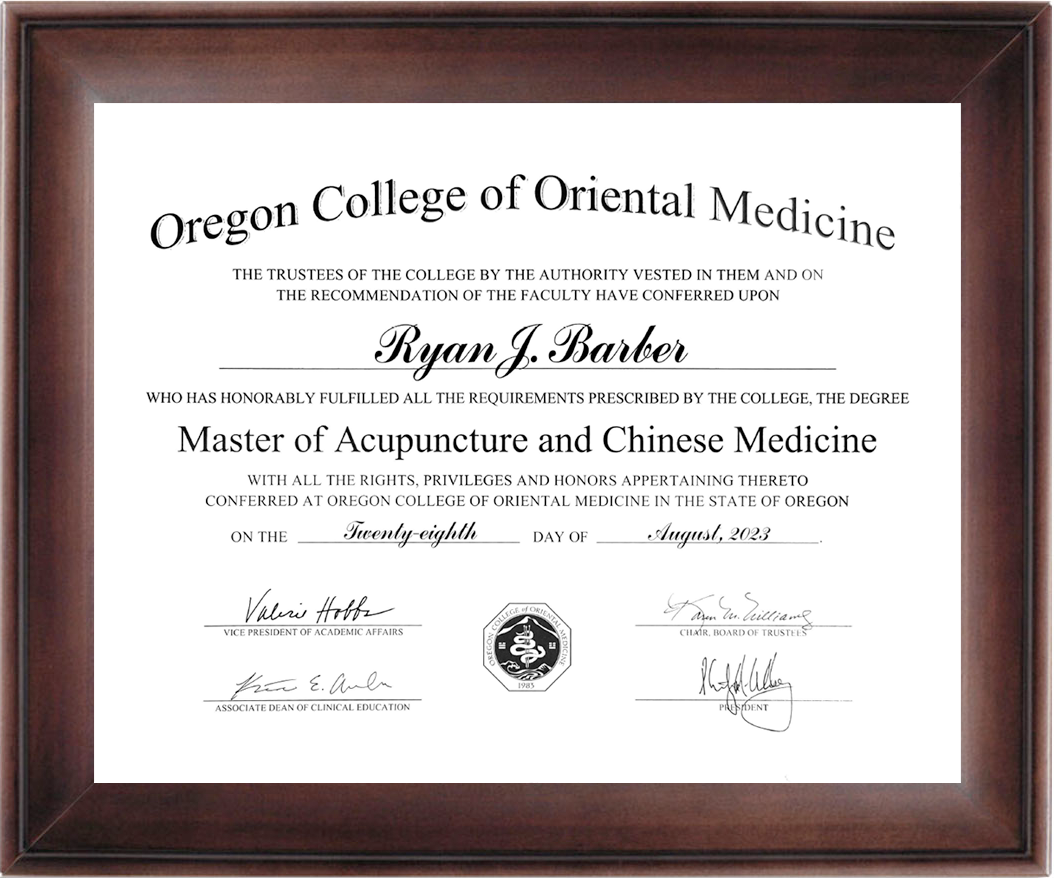I am a 2023 graduate of Oregon College of Oriental Medicine and a licensed acupuncturist. I am very grateful to be continuing my Chinese Medicine journey with Scott Paglia. I’ve been his patient. I’ve seen this medicine work for me and for others.